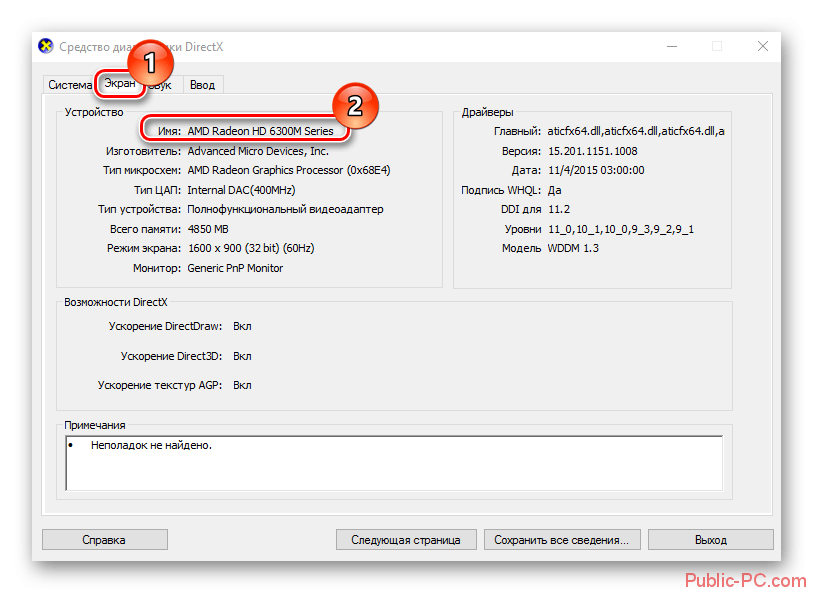 Переключитесь на вкладку «Экран» и посмотрите значение строки «Имя».
