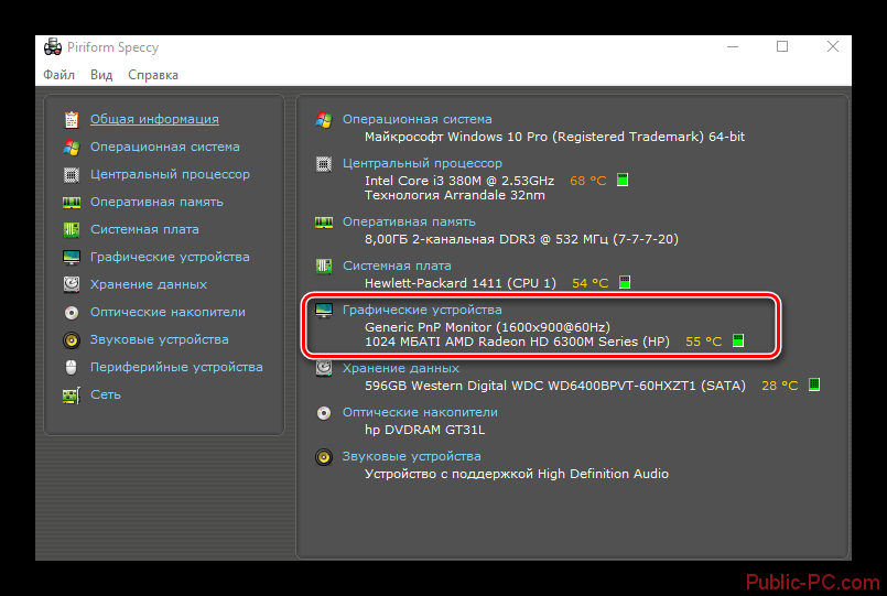 Чтобы узнать модель видеокарты в Speccy, просто откройте программу. В главном окне вы увидите все основные характеристики компьютера