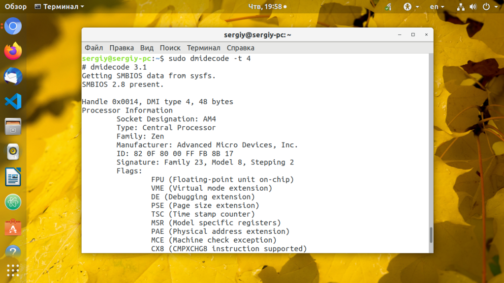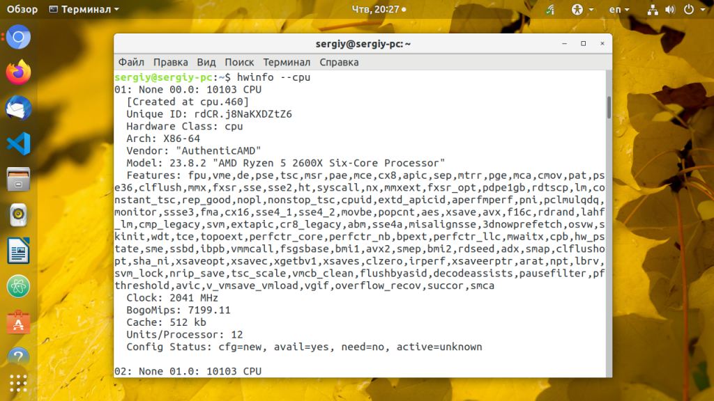 Утилита hwinfo позволяет выводить информацию о различном оборудовании, в том числе и о процессоре. Программа отображает модель процессора, текущую частоту, поддерживаемые расширения. Наверное, это самый простой способ узнать частоту процессора Linux:
