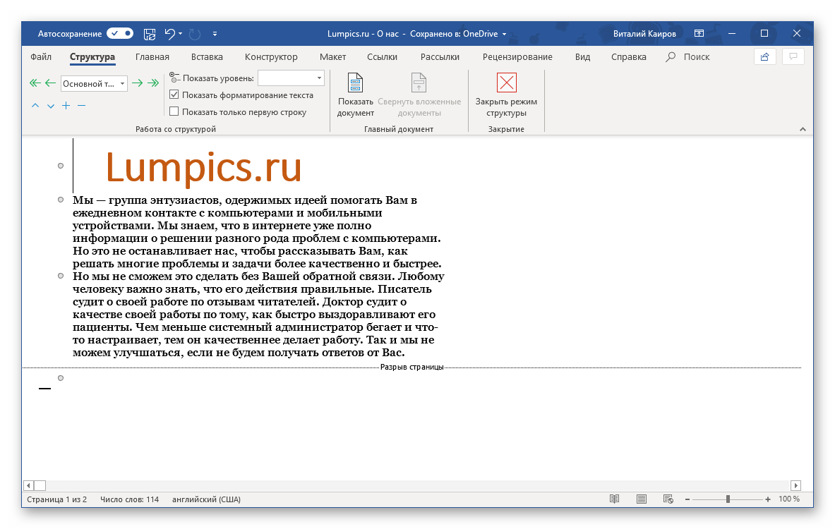 Отображается только горизонтальная линейка (в «Разметке страницы») Если вы работаете с документом в режиме «Разметки страницы», но при этом видите только горизонтальную линейку, необходимо выполнить следующее: