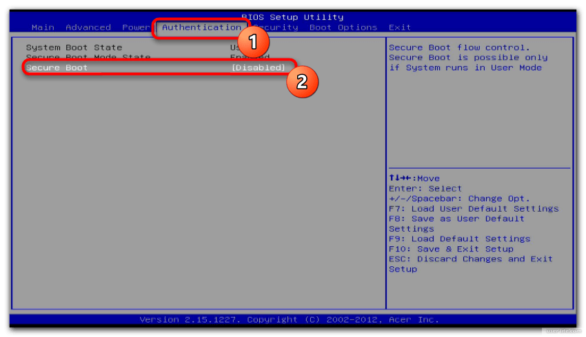 Как отключить Secure Boot на ноутбуке Acer?