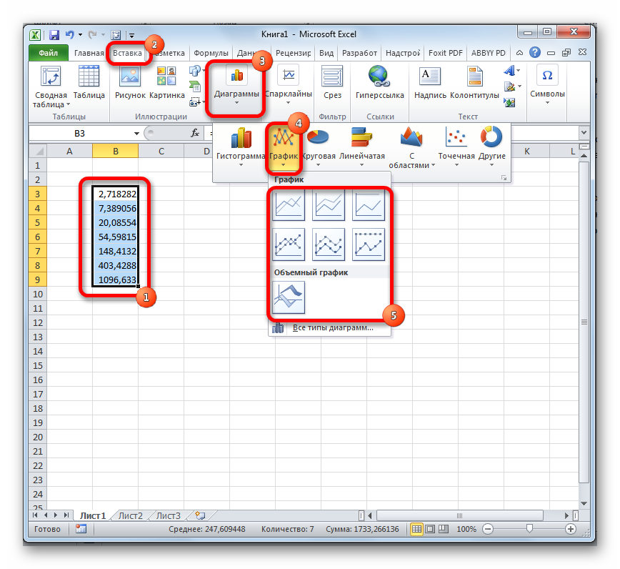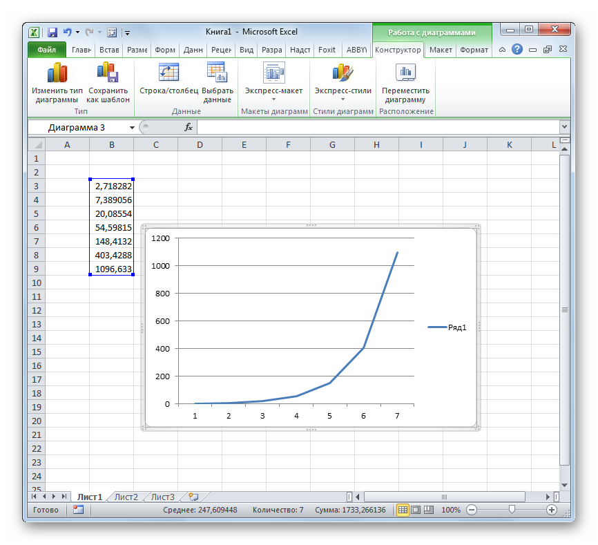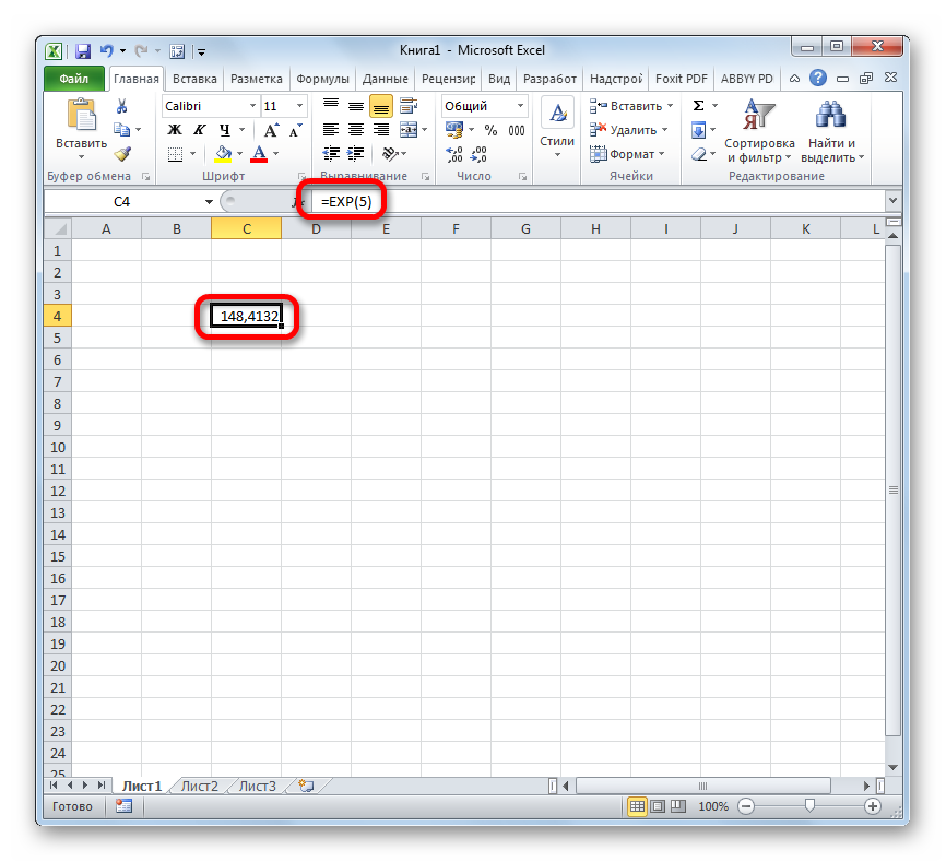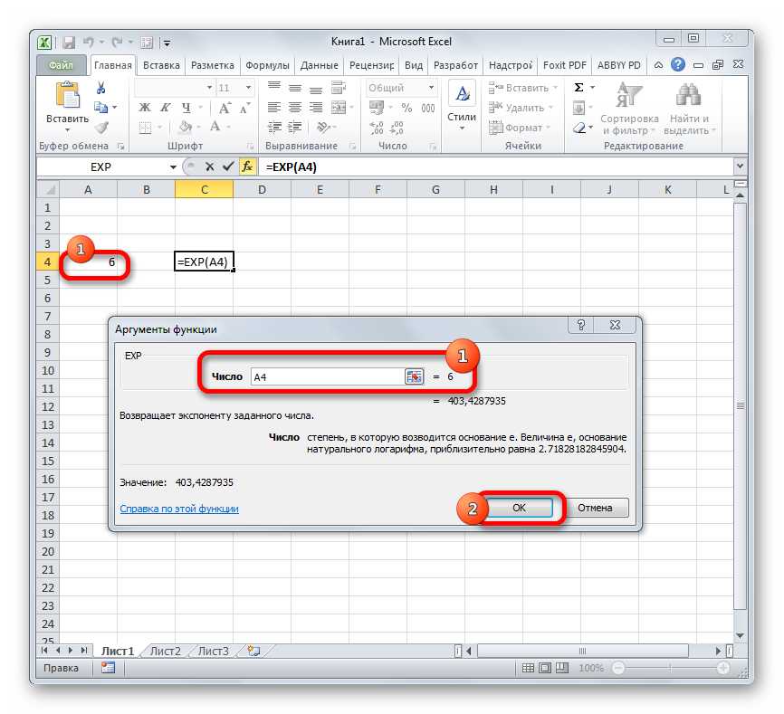 По смыслу функции более-менее объяснил, теперь напишу как считать ее и есть ли функция экспонента в Excel. Само собой есть.