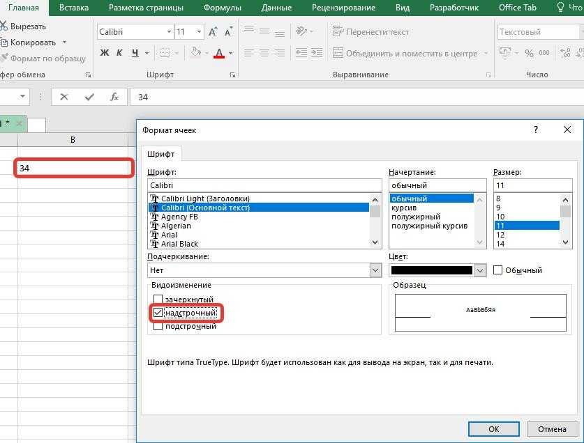 Надстрочный индекс в Excel (было: степень числа в Excel)