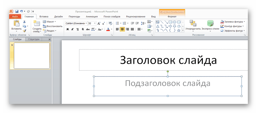 - Открыть PowerPoint и вставить рисунок из буфера подобно тому, как это было описано в предыдущем способе.