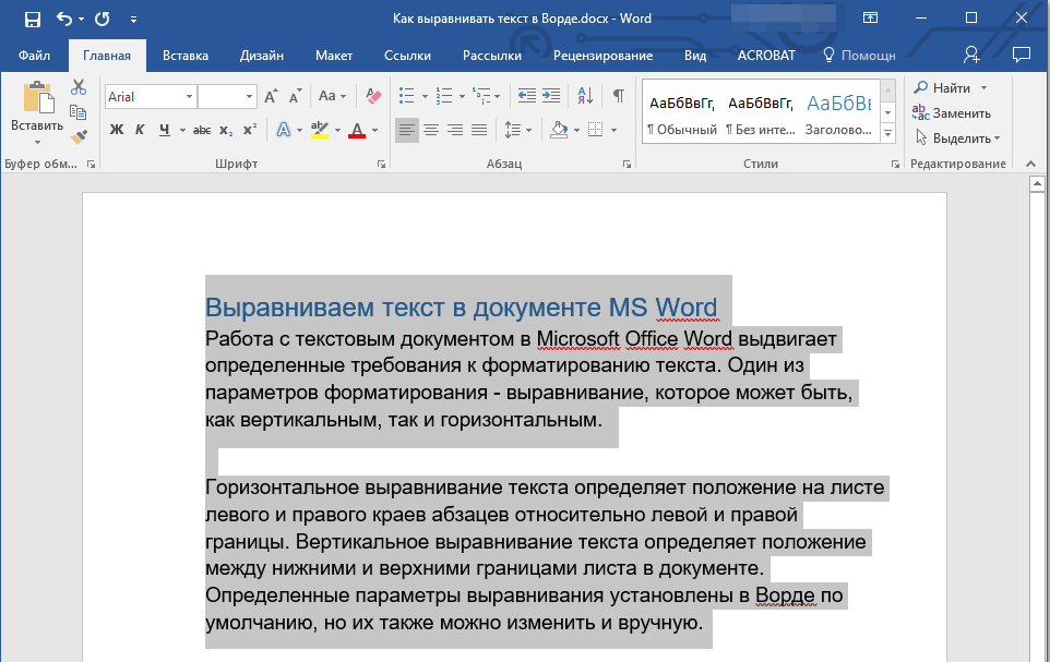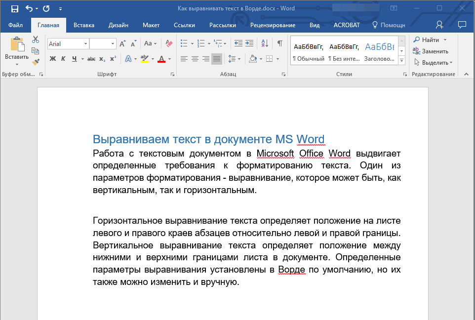Работа с текстовым документом в Microsoft Office Word выдвигает определенные требования к форматированию текста. Один из параметров форматирования — выравнивание, которое может быть, как вертикальным, так и горизонтальным.