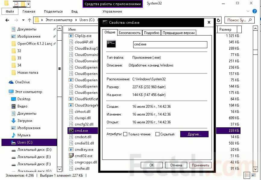 Физический исполняемый файл консоли хранится на системном диске в папке Windows (С\Windows\System32\cmd.exe). Именно к этому файлу обращаются люди для получения доступа к командной строке. Подробнее о способах открыть консоль рассказано далее.