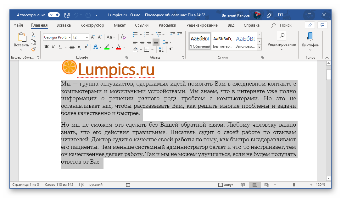 - Выделите фрагмент текста или весь текст, регистр для которого вы хотите изменить.