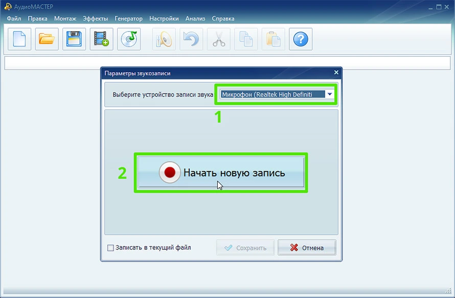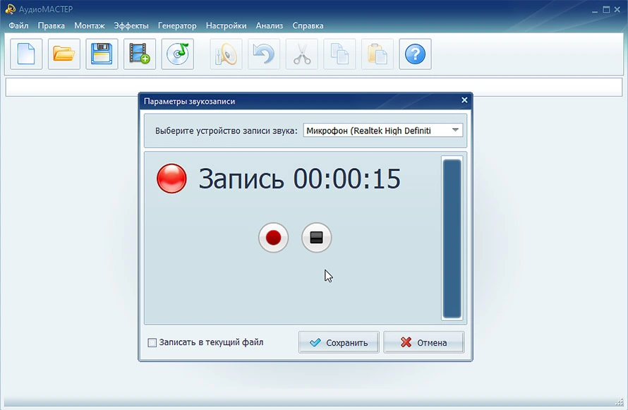 Инструкция по записи звука в АудиоМАСТЕРЕ: