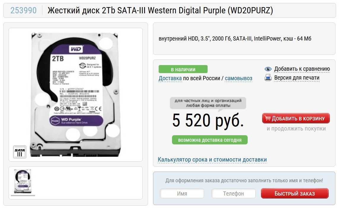 Под файлохранилище у нас будет тихий, холодный и надежный Western Digital Purple (WD20PURZ), объемом 2 ТБ.