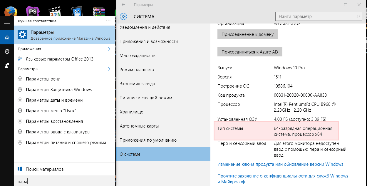 Или наберите в поиске или выберите сразу пункт Параметры->Система->О системе