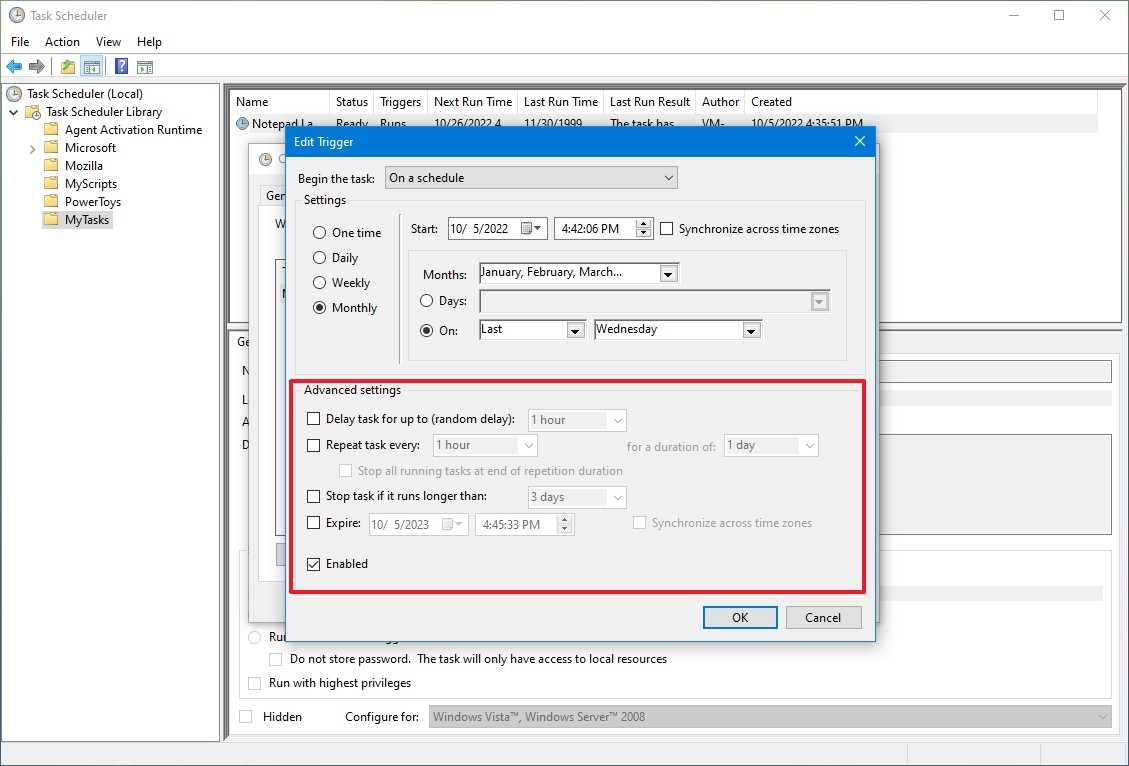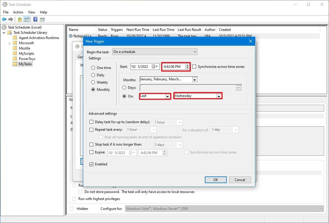 - Настраиваем время исполнения в соответствии с нашими требованиями.