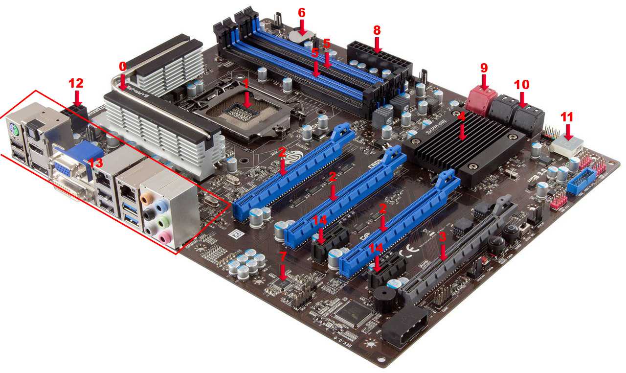 Чтобы лучше ориентироваться в основных компонентах и в дальнейшем визуализировать для себя непосредственно то, что мы будем выбирать – предлагаю ознакомиться с раскладкой элементов материнской платы на конкретном примере. Для образца мы взяли весьма оригинальную материнскую плату Sapphire Pure Z77K (оригинальную, потому что Sapphire), которая к тому же является ориентированной на рынок оверклокинга. На самом деле, для задачи наглядного рассмотрения основных элементов материнской платы, абсолютно не имеет значения ни модель, ни позиционирование. Поэтому переходим к рассмотрению данной системной платы: