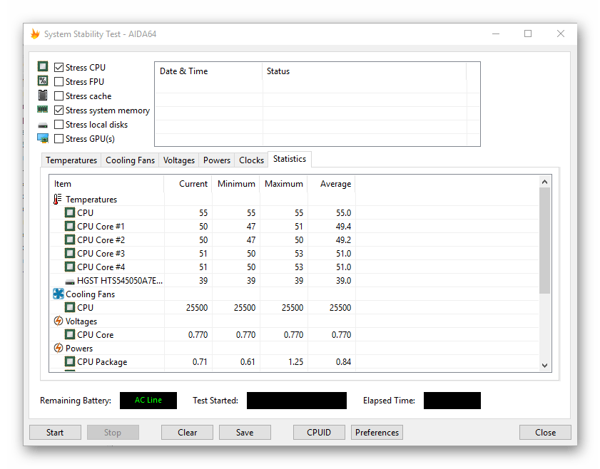 Дополнительно можно тестировать ПК на стабильность. Можно запустить стресс тест процессора, видеокарты, оперативной памяти и даже установленного накопителя. Тестируйте все комплектующие одновременно или создавайте нагрузку для отдельных компонентов.