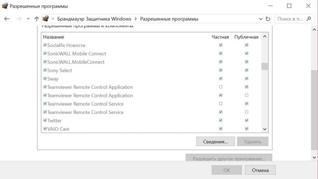 Для разблокировки в Windows 10 необходимо открыть «Панель управления«, далее «Брандмауэр Защитника Windows«, далее «Разрешение обмена данными с приложениями в брандмауэре защитника Windows». В открывшемся окне необходимо выставить галочки напротив строк, в которых присутствует название TeamViewer.