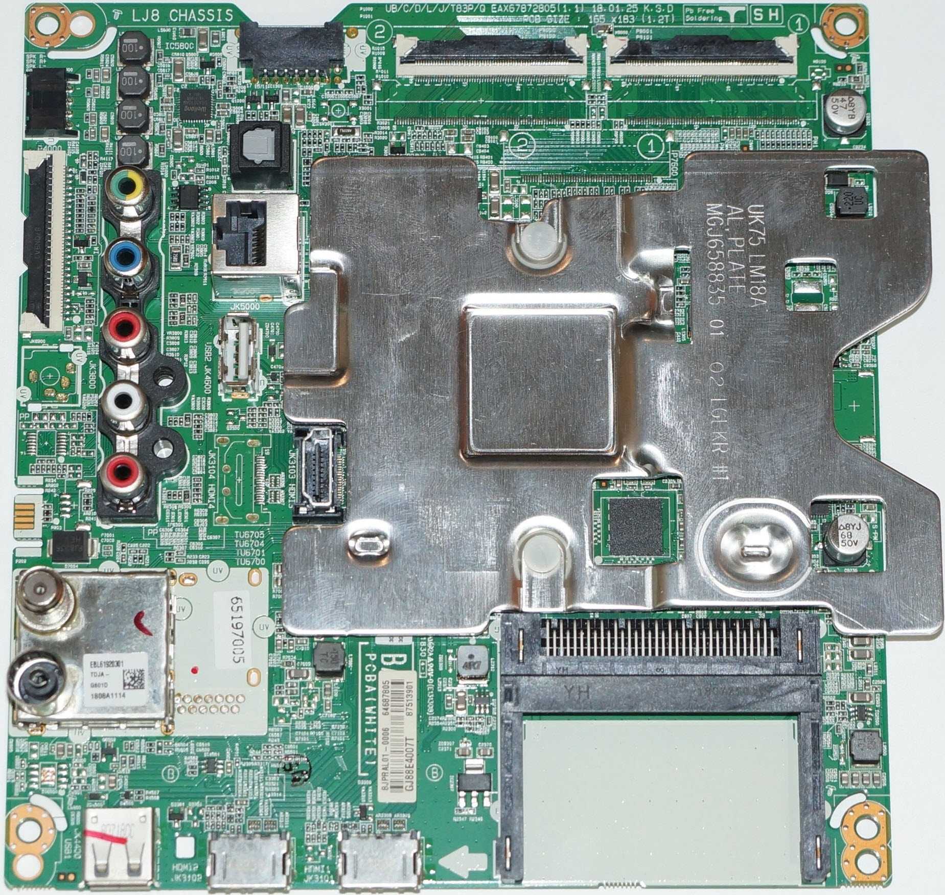 Ремонт или диагностику материнской платы EAX67872805 следует начать с проверки стабилизаторов и преобразователей питания, необходимых для питания микросхем и матрицы. При необходимости, следует обновить или заменить ПО (программное обеспечение).