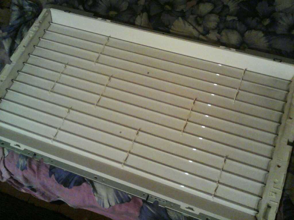 После нужно снять пластиковую рамку и рассеиватели, и уже после мы добираемся до подсветки.