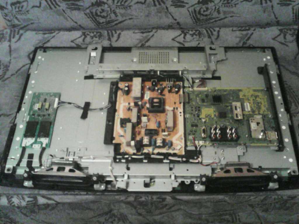 Поступил на ремонт телевизор Panasonic TX-LR32C10 с неисправностью выключается через 5 секунд, как сказал хозяин что вечером выключил, а на утро он уже не включился в нормальный режим. Эта модель мне попалась в первые и сразу о неисправности я сказать не чего не смог, первое что пришло в голову это или инвертор, или лампы подсветки потому что при включении правая часть экрана была немного темнее левой. Но не будем тянуть, а сразу разберем телевизор.