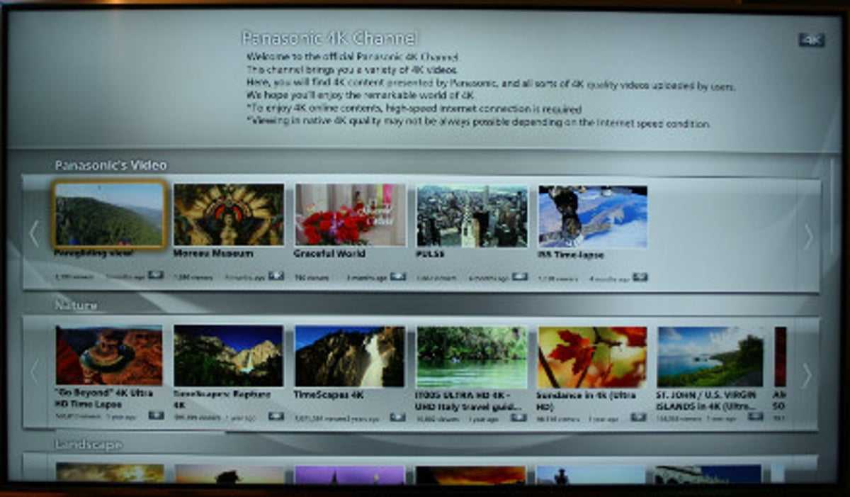 Panasonic has added its own 4K channel as an app, but the quality of the streams isn’t great as most of the footage suffers from MPEG blocking and looks worse than good quality 1080p video, even when streaming via a 60Mbps Virgin Media Internet connection.