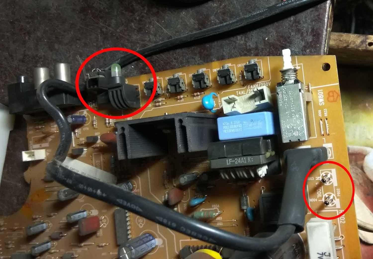 Если же индикатор исправен, но телевизор не хочет включаться — ток не проходит по всем платам и компонентам телевизора.