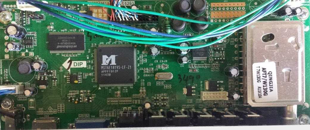 Неисправность тюнера AFT7/W130G устанавливается после проверки ПО и всех питающих напряжений на его выводах. Обмен данными тюнера с процессором по шине I2C можно проконтролировать осциллографом.