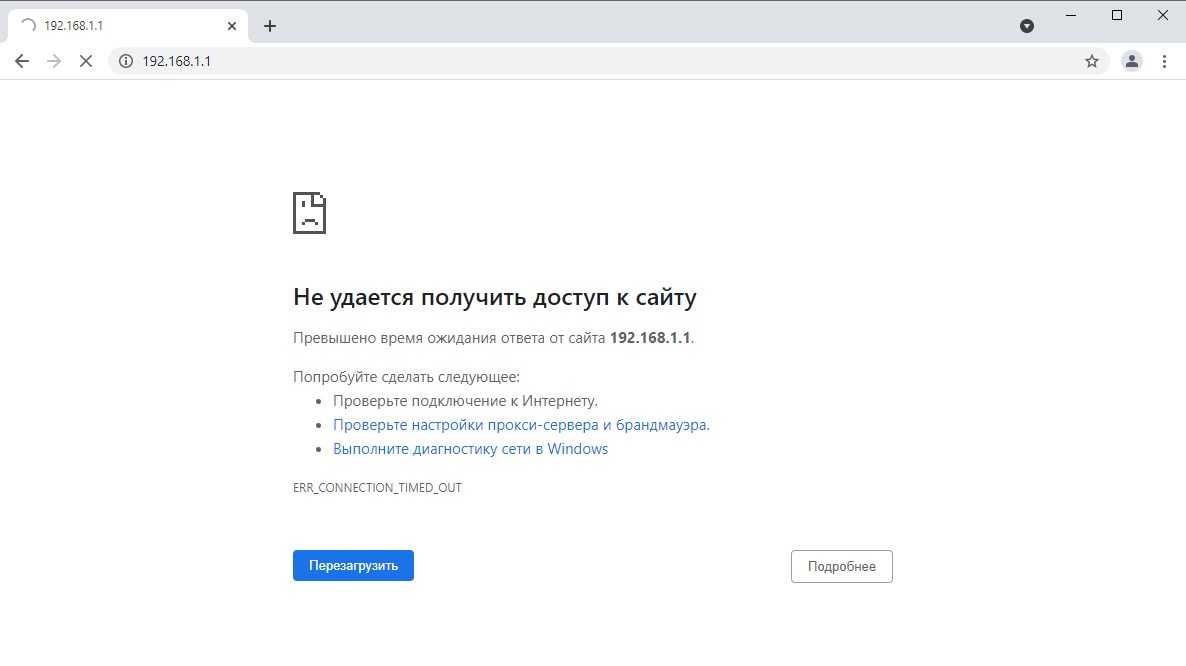Вполне возможно, что адрес роутера является не 192.168.1.1 — именно тогда, при попытке зайти в настройки роутера через браузер, вы увидите сообщения вроде «Не удается открыть эту страницу», «Не удается получить доступ к сайту», «Время ожидания соединения истекло» или что-то в таком духе.