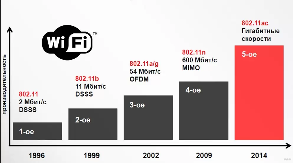 Технология не стоит на месте и вай-фай все время улучшается. На данный момент вышел еще один протокол Wi-Fi .11ac. Произошло это в 2014 году. Он является самым современным утвержденным стандартом беспроводной связи.
