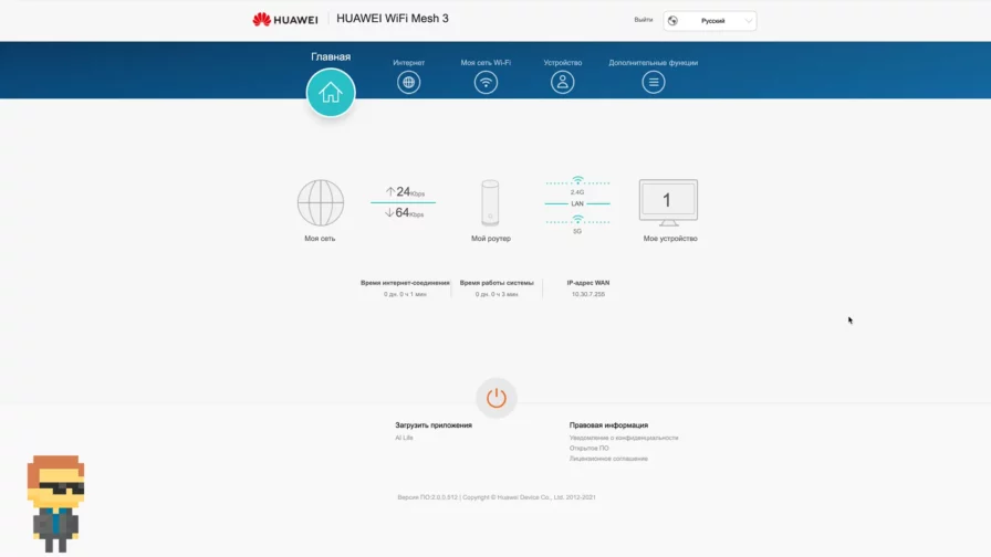 - Статистика по времени работы и IP-адрес WAN.