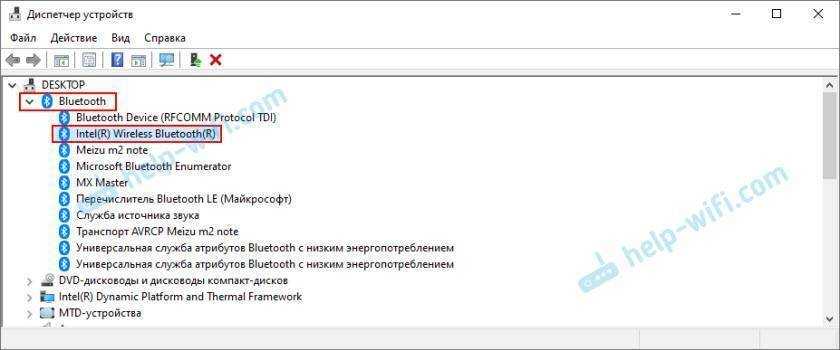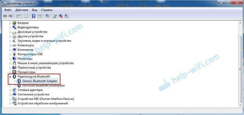 Там должна быть вкладка “Bluetooth”, или “Радиомодули Bluetooth”. В этом разделе должен быть Bluetooth адаптер. В зависимости от модели и установленного драйвера имя может быть разным. В Windows 10: