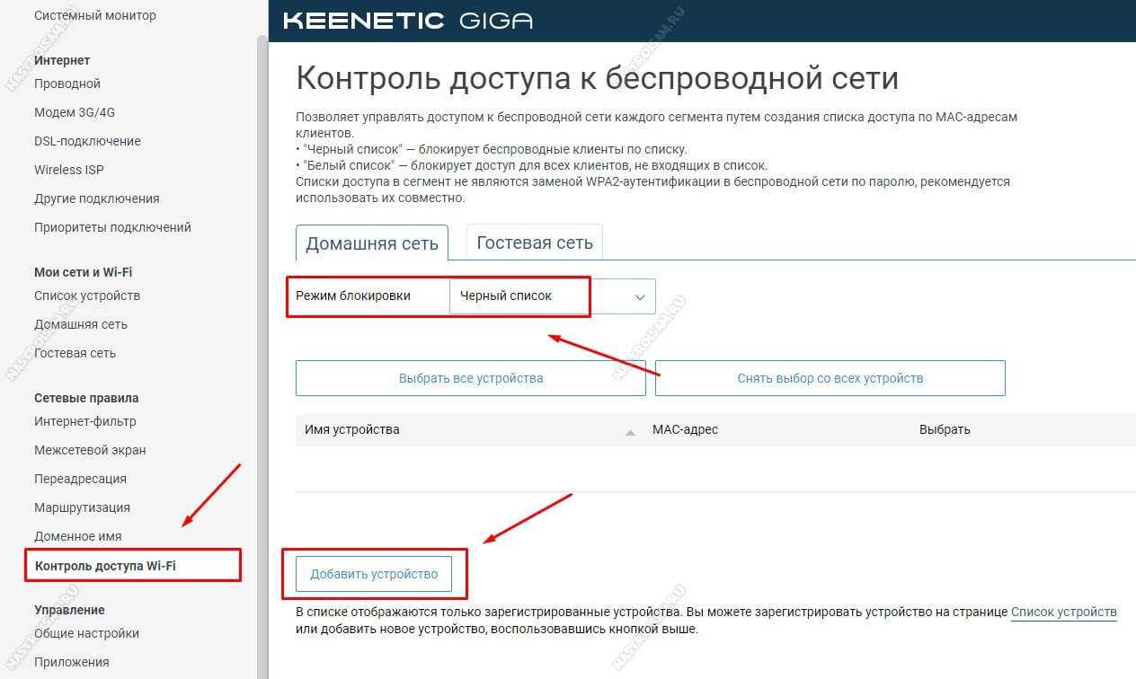 В этом случае обычно достаточно активировать Черный список (Blacklist) и внести в него мак-адрес одного или нескольких устройств, которые не смогут после этого подключиться к Вай-Фай — роутер будет их попросту отбрасывать.