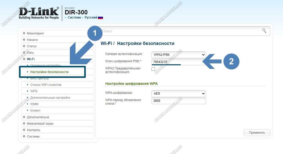 Как сменить пароль WiFi на D-Link (DIR-300, 620, 825 и тп.)