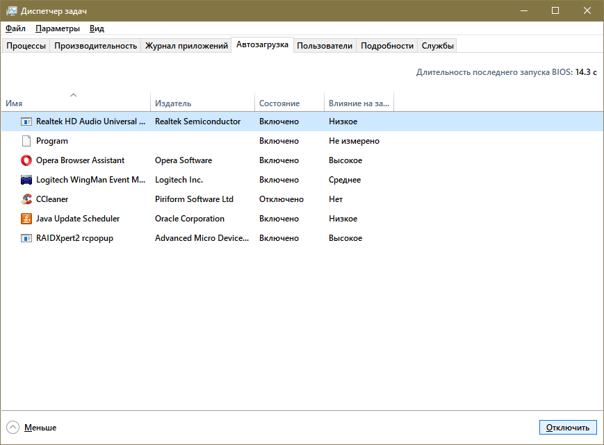 - Дополнительно деактивируйте все, что присутствует в перечне автозагрузки.