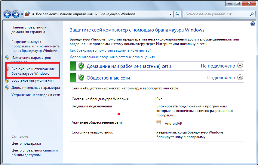 Что касается брандмауэра (он же фаервол), то чтобы его выключить, сделайте вот что:
