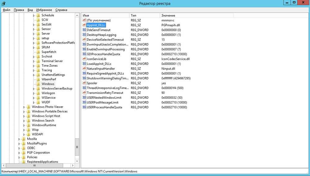 Справа будет показано множество файлов, необходимо отыскать Appinit_DLLs, кликнуть на него правой кнопкой мыши, нажать «изменить».