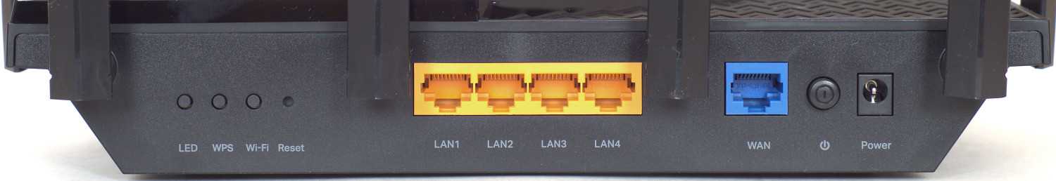 Также сзади размещены порты для подключения кабелей. Их здесь не много и не мало, а ровно столько, сколько положено стандартному маршрутизатору — 1 WAN и 4 LAN. Все работают со скоростью до 1 ГБит/c. При этом на LAN можно из панели управления запрограммировать работу с подключением к IPTV