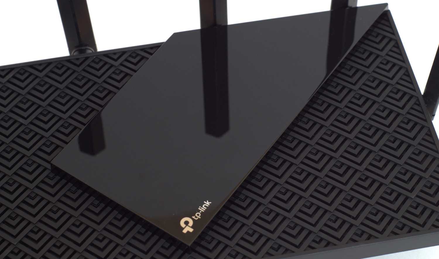 Но в целом дизайн получился шикарный. Особенно понравилась стилизованная буква «Х» на верхней крышке, которая выполнена за счет сочетания матового и глянцевого пластика разной формы. Явный намек на то, то это не просто какой-то там роутер, а именно с WiFi 6 «AX»! А между элементами этой буквы красиво вписана решетка для охлаждения и логотип TP-Link.