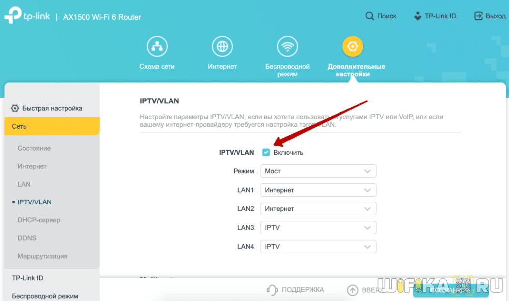 Раздел «Дополнительные настройки», вкладка «Сеть», подвкладка «IPTVVLAN».