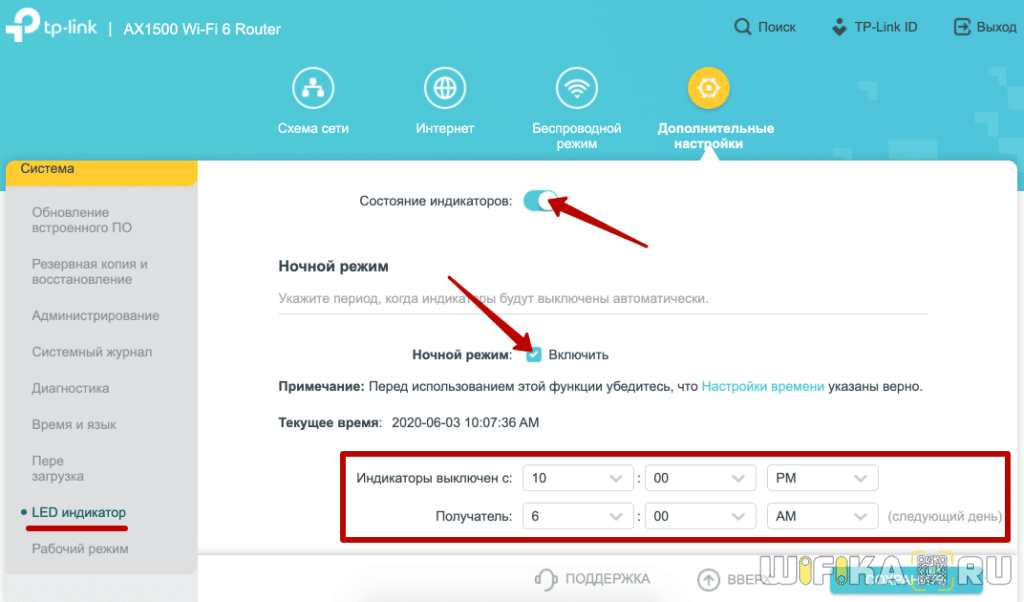 При работе они горят зеленым (не моргают) и свет от индикаторов неяркий, поэтому в ночное время их работа не будет раздражать, а если все-таки будет надоедать, то их можно отключить через настройки в прошивке или соответствующей кнопкой (LED) с обратной стороны роутера.