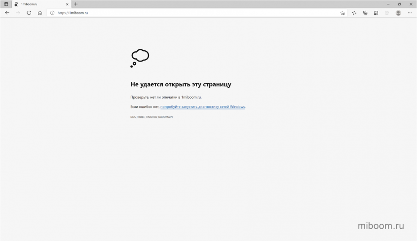 Как и Google Chrome, Microsoft Edge отображает код ошибки DNS_PROBE_FINISHED_NXDOMAIN.