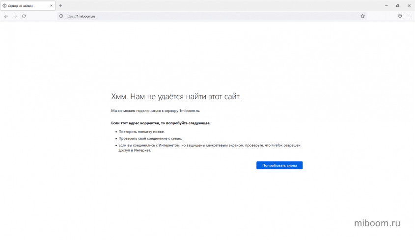- В английской версии: Hmm. We’re having trouble finding that site.