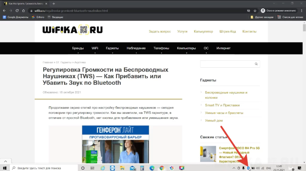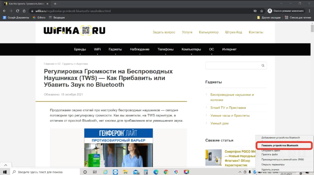 И щелкнуть ПКМ по иконке блютуз, под которой отображается имя подклчюенный к компьютеру наушников