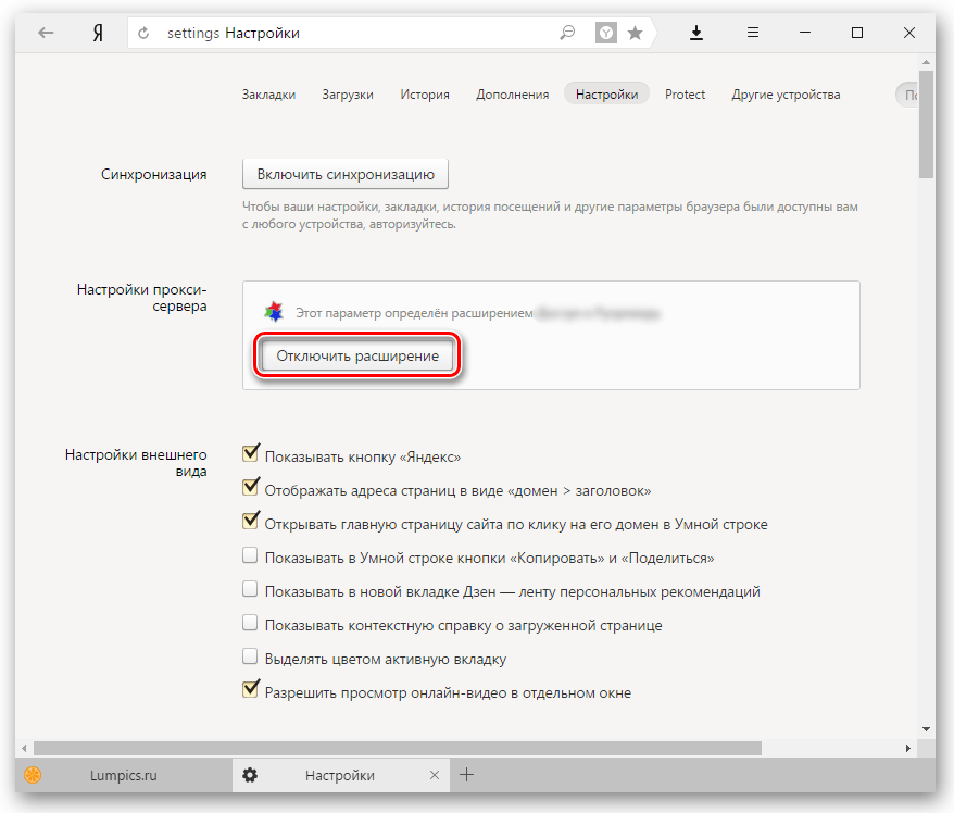 Часто пользователи устанавливают расширения-анонимайзеры. Если есть трудности с отключением, например, не получается найти кнопку отключения работы расширения или иконки анонимайзера вообще нет на панели браузера, то отключить его можно через настройки.