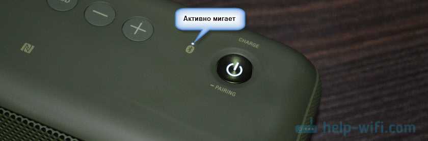 Дальше нужно включить колонку и перевести ее в режим подключения. Очень важный момент! Нужно, чтобы индикатор Bluetooth на колонке активно мигал. Только тогда другие устройства могут ее обнаруживать и подключаться. Как привило, для этого нужно нажать (чаще всего нажать и подержать) кнопку с иконкой Bluetooth, или кнопку питания.