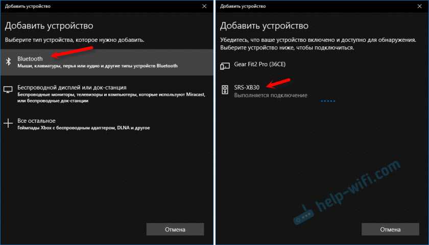 После этого на компьютере выбираем «Bluetooth». Начнется поиск доступных устройств. В списке должна появится наша колонка. У меня Sony SRS-XB30. Нажимаем на нее.