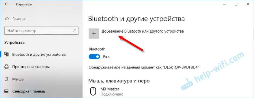 - Жмите на кнопку «Добавление Bluetooth или другого …».