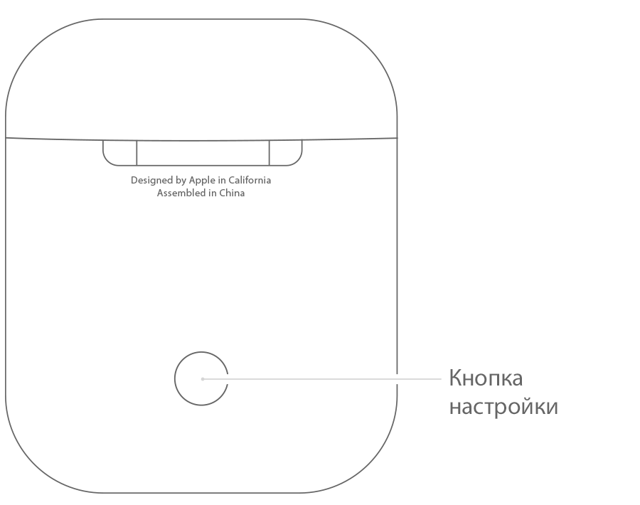 Окно с параметрами оставляем открытым, берем наши наушники AirPods, открываем кейс и на задней стороне кейса на секунды три зажимаем круглую кнопку. Держим ее нажатой, пока индикатор внутри кейса не начнет мигать белым цветом.