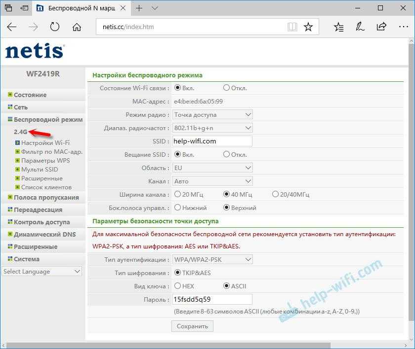 Настройка Wi-Fi, и установка пароля на маршрутизаторе Netis WF2411