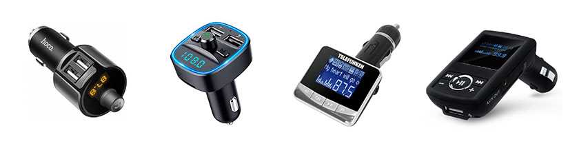 В отдельную категорию выделяют трансмиттеры. Так называют передатчики, которые преобразуют данные смартфона в волны FM-диапазона. Пунктом назначения становится радиоприемник автомобильного магнитофона. Его подключают в стандартный разъем телефона. После активизации трансмиттера водителю остается включить магнитолу и отыскать нужную FM-волну. Если все будет сделано правильно, из динамиков зазвучит музыка, сохраненная в андроиде.
