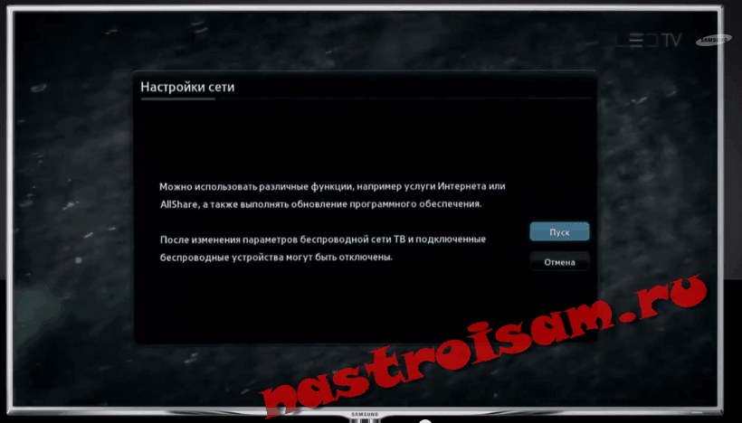 Телевизор попросит вас запустить мастер подключения. Соглашаемся и нажимаем кнопку Start:
