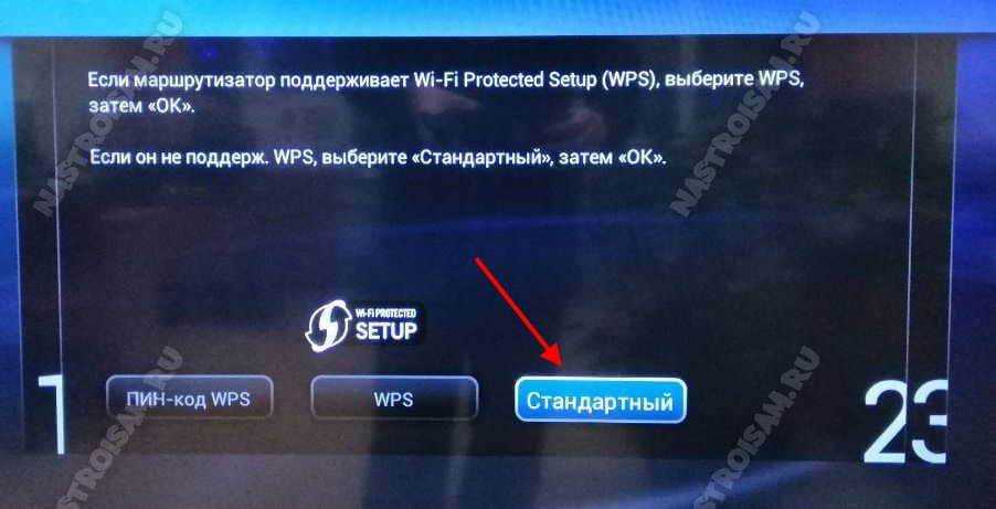 Второй. Если Wi-Fi-модуль встроен в телевизор, в мастере настроек сети выберите пункт WPS.