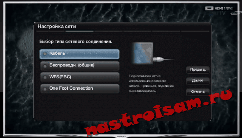 Настройка подключения телевизора к Интернет по кабелю: